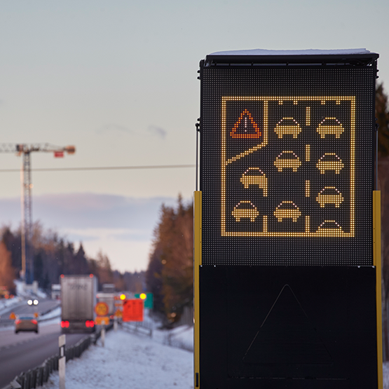 Voimme jo tänään tarjota sinulle useita ratkaisuja, joita voimme valvoa keskitetysti. VMS-kilvet ja -vaunut reaaliaikaisen tiedon saamiseksi tienkäyttäjille, esimerkiksi muuttuvat viestit ja ruuhkavaroitukset.