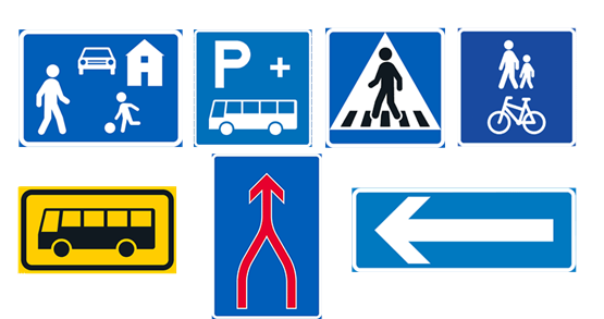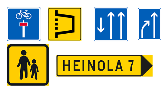 Meillä on kattava valikoima liikennemerkkejä. Voimme myös valmistaa juuri tarvitsemasi merkit. Meillä on merkit, sinä päätät tekstin!