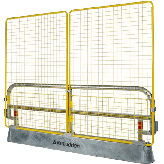 Raskassuojaan asennettu GC-verkko 2,1 x 1,4, tarjoaa laadukkaan suojan jalankulkijoille ja pyöräilijöille. GC Fence voidaan asentaa myös esteettömän työmaa-aidan jalustalle perinteisenä rakennusaitana. Ulkonevien painojen tai jalkojen puuttuminen minimoi kompastumisriskiä.